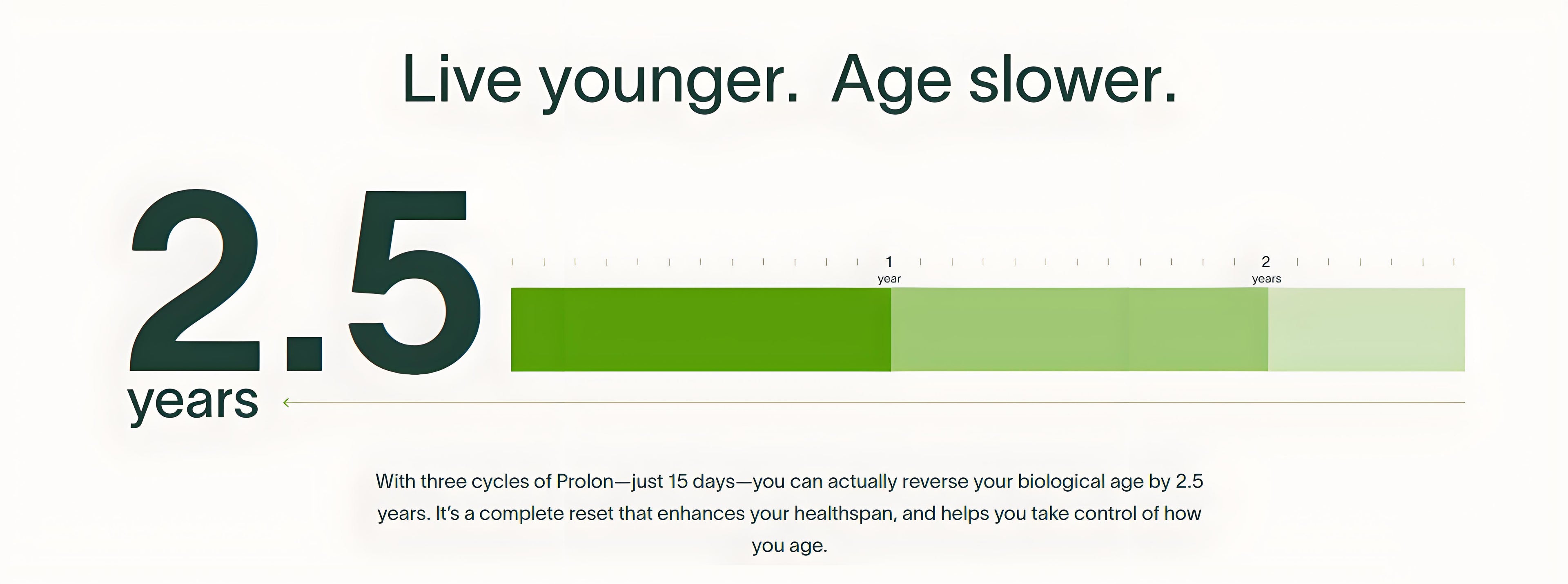 Age on your terms. Three cycles of the 5-Day FMD reverses your biological age by 2.5 years.